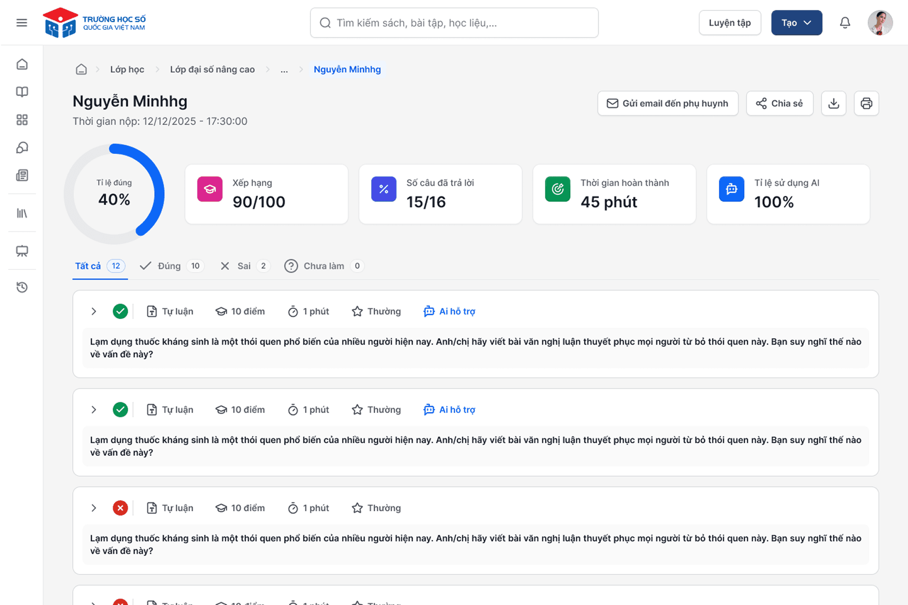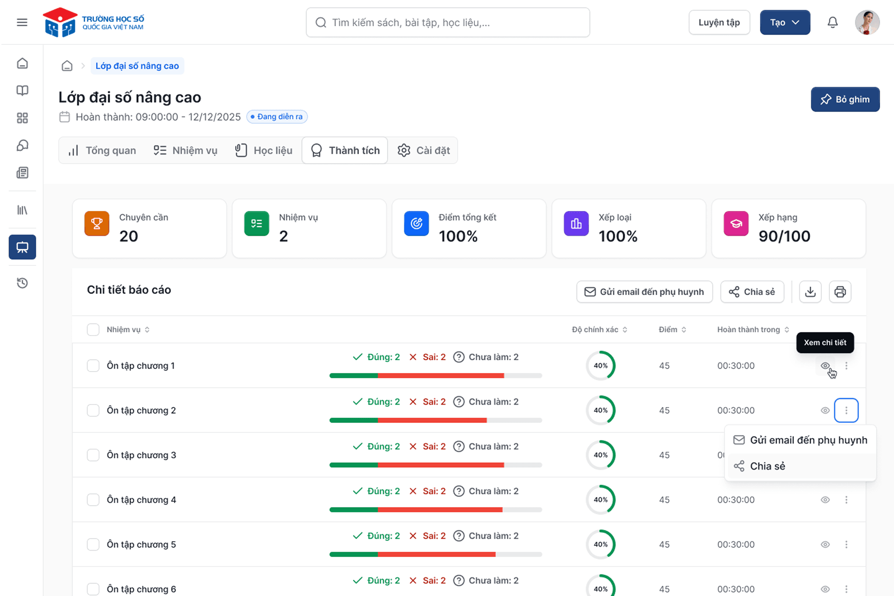 Chủ động theo dõi được tiến trình và kết quả học tập của con, kết nối dễ dàng với giáo viên và nhà trường